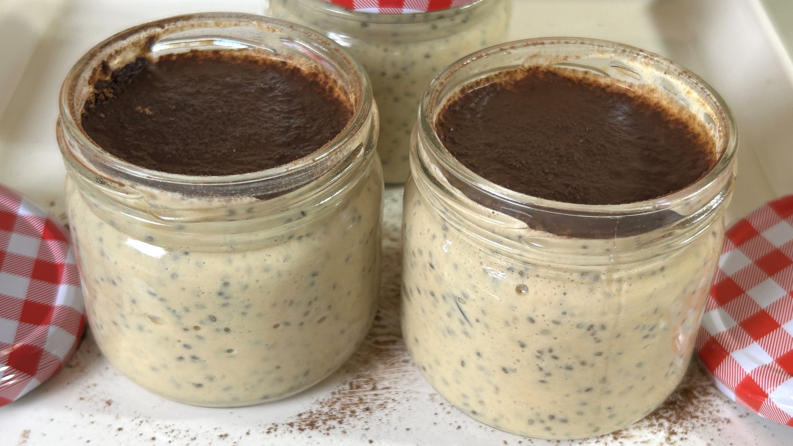- Pour the chia mixture into small jars or cups, filling them to the top.