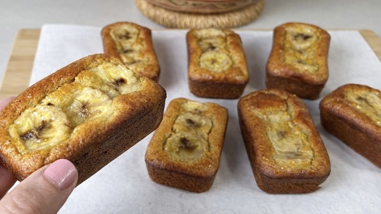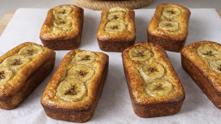 - If you are using the garnish, gently place a banana slice on top of each mini cake.