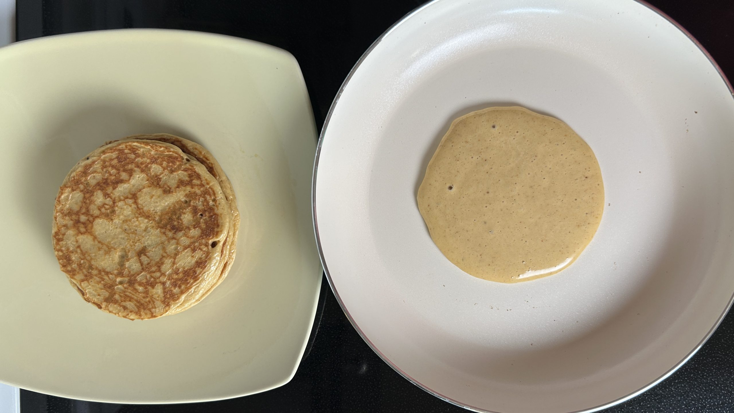 - Pour about ¼ cup of batter per pancake onto the pan.