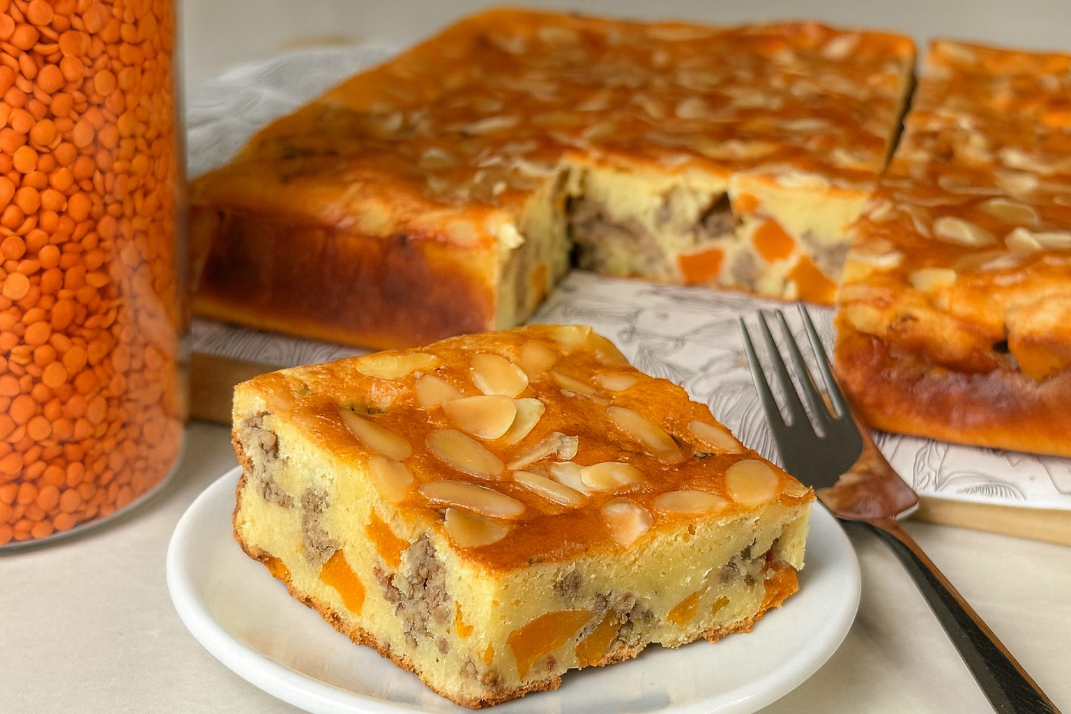 Instead of using pastry dough, this recipe uses a batter made from red lentils, eggs, cottage cheese, and a touch of olive oil. When baked, it forms a golden and tender crust with deep, earthy flavor that pairs wonderfully with the meat and vegetable filling. Inside, sautéed ground beef, carrots, onions, garlic, and spices come together to create a hearty and satisfying center that feels comforting yet surprisingly light. Because everything finishes cooking in the oven, it also means less hassle, perfect for busy weeknights, family dinners, holiday tables, or even meal prep.